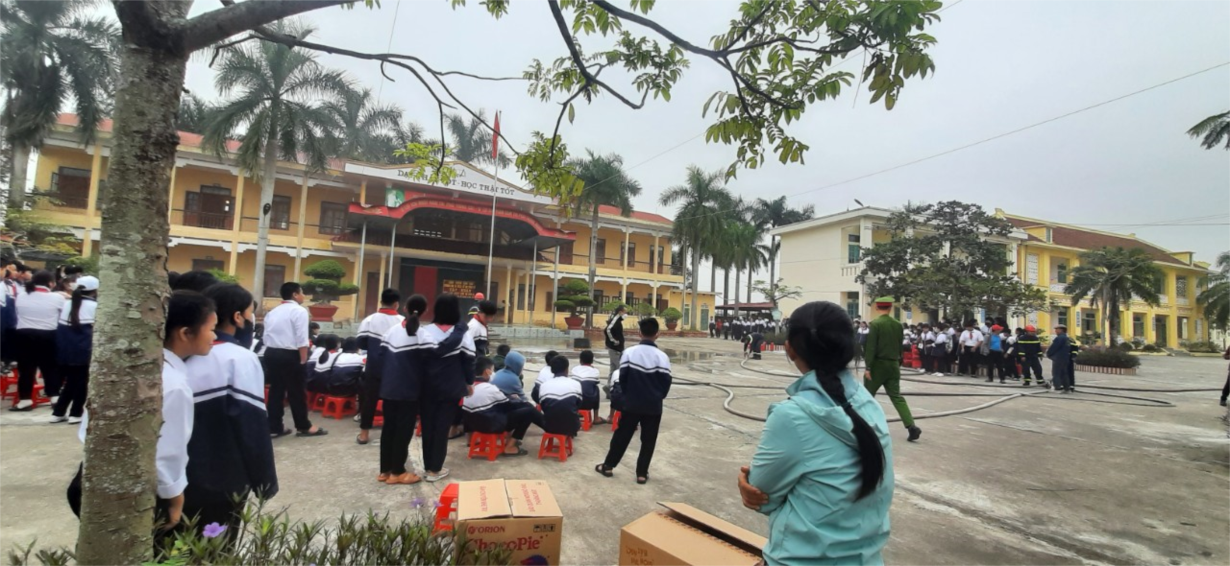 năng thoát hiểm thoát nạn cho cán bộ, giáo viên, nhân viên và học sinh các nhà trường, trường Mầm non Vĩnh Tiến, Mầm non Cổ Am, Tiểu học Vĩnh Tiến Cổ Am, trường THCS Cổ Am-Vĩnh Tiến đã phối