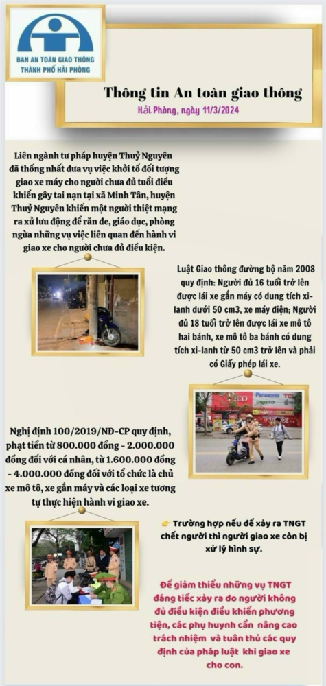 giao giao thông đường bộ, đề nghị các bậc cha mẹ học sinh cần thông báo