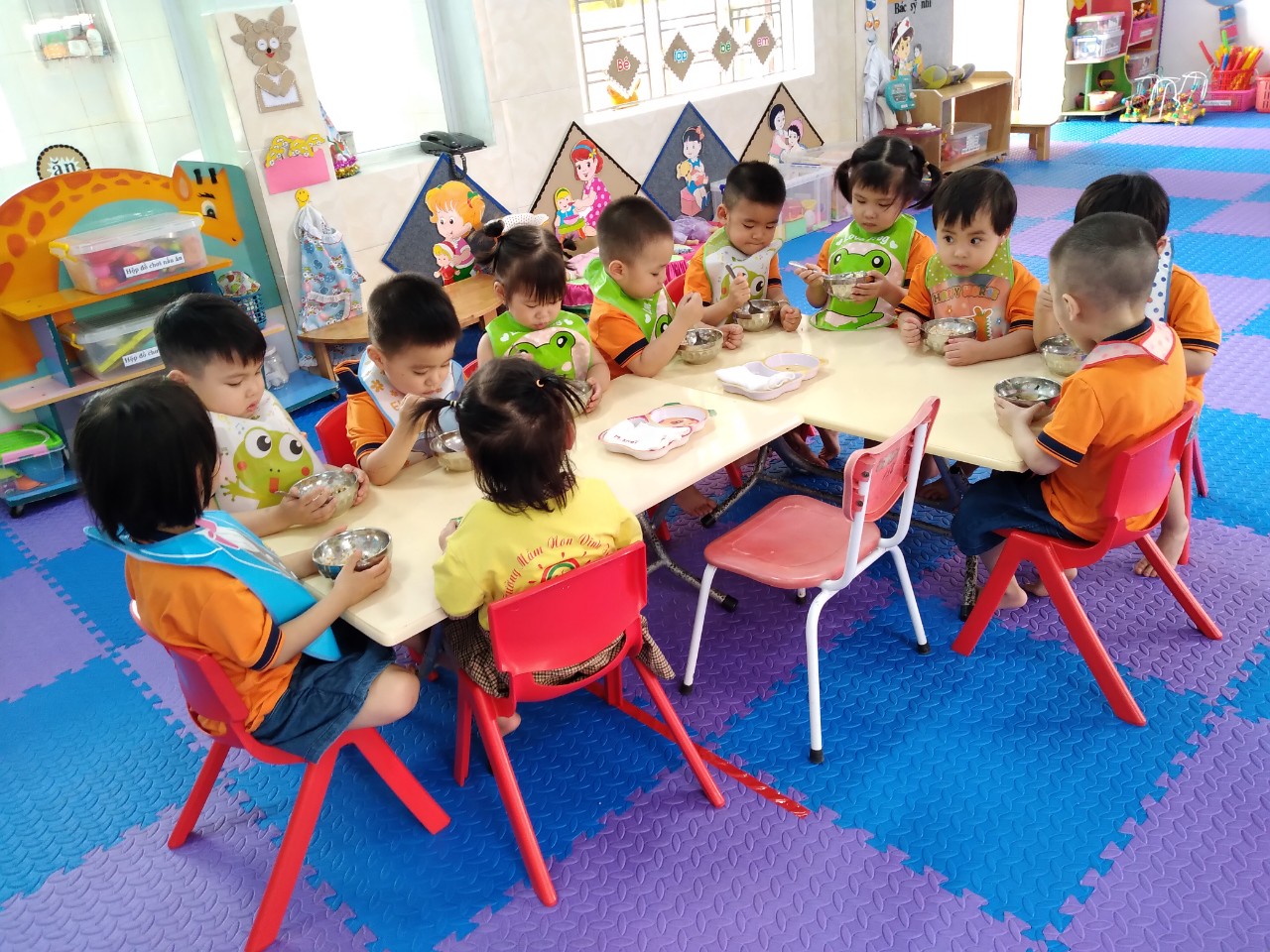 lau miệng,… Trẻ được ăn theo các nhóm nhỏ cùng nhau, giúp trẻ hào hứng