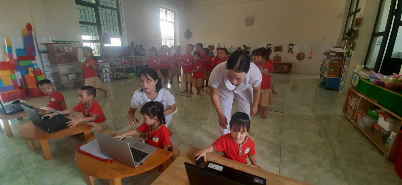 Mời ba mẹ cùng xem các bé lớp mẫu giáo nhỡ 4TB2 tham gia hoạt động được làm quen với máy vi tính nhé!