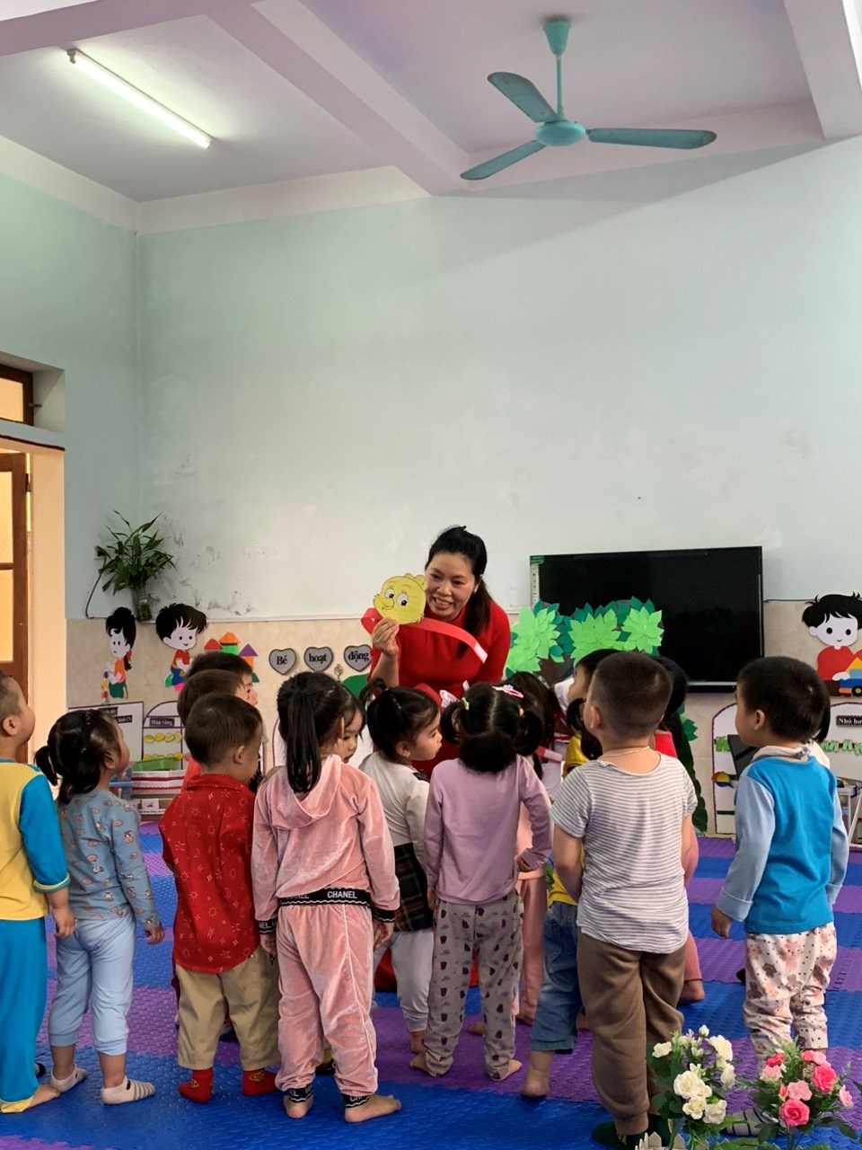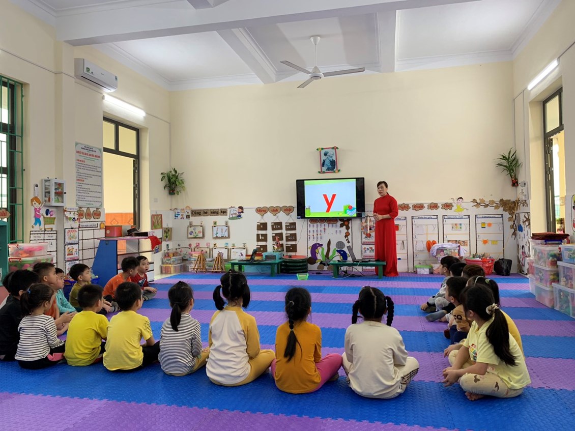 qua tiết học trò chơi với chữ cái g,y. Cô và trò lớp mẫu giáo lớn A1,