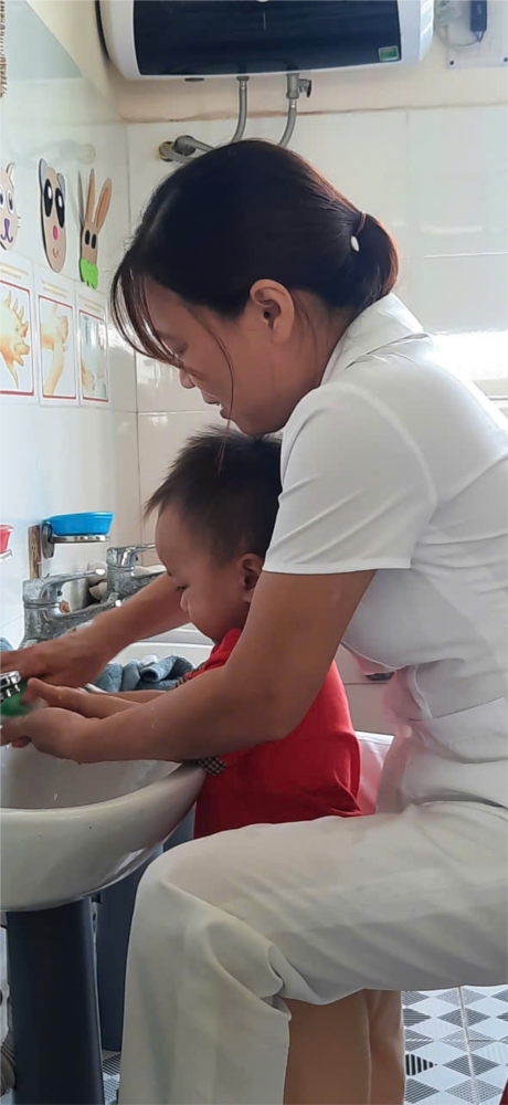 Ở trường các con được rèn luyện giữ gìn vệ sinh cá nhân như một thói quen biết tự rửa tay trước và sau khi ăn cơm.